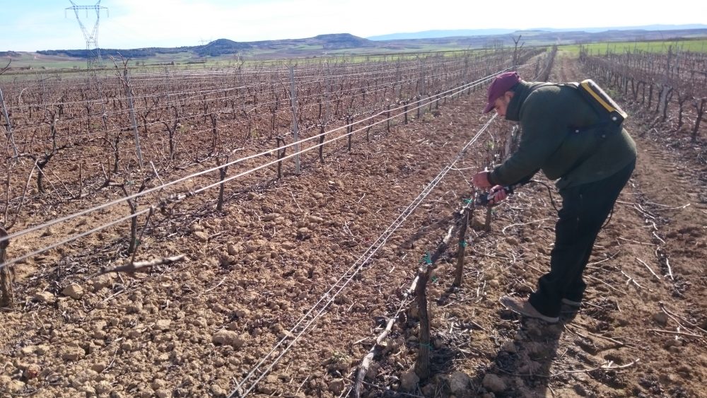 Nuestra explotación en Bodegas Betolaza consta de 15 parcelas de 0,27 ha a 2,1 ha con edades comprendidas entre los 3 y los 101 años. El 75% de la explotación tiene una poda tradicional (ya que las cepas están en vaso) y el resto, al estar en espaldera, se realiza la poda Royat doble.